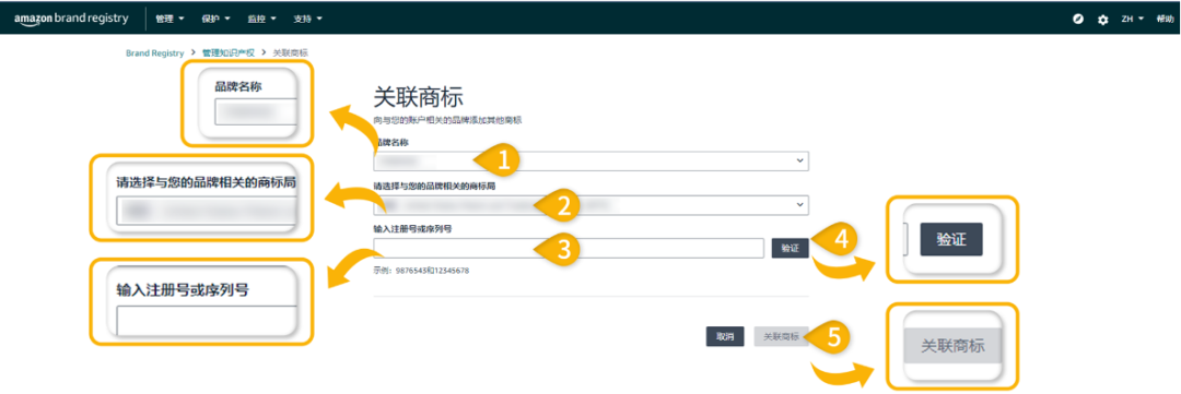 3.等待审核完成:提交后3-5个工作日,亚马逊会发送6位验证码至商标代理律师邮箱,在品牌注册后台输入验证码完成认证即可实现关联
